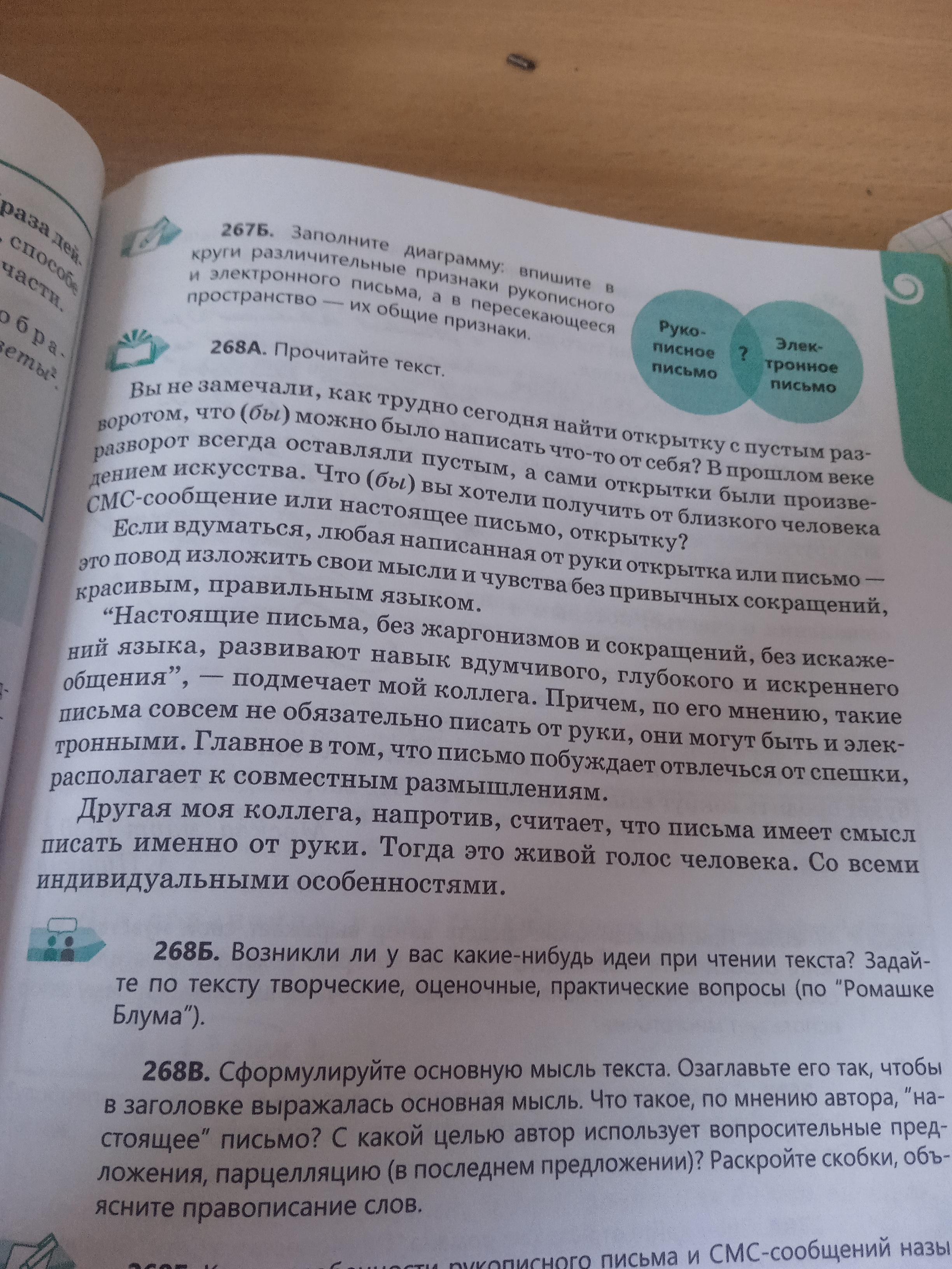 Заполните диаграмму, впишите в круги различные признаки рукописного и электронного письма, а в пересекающее пространство их общие признаки.