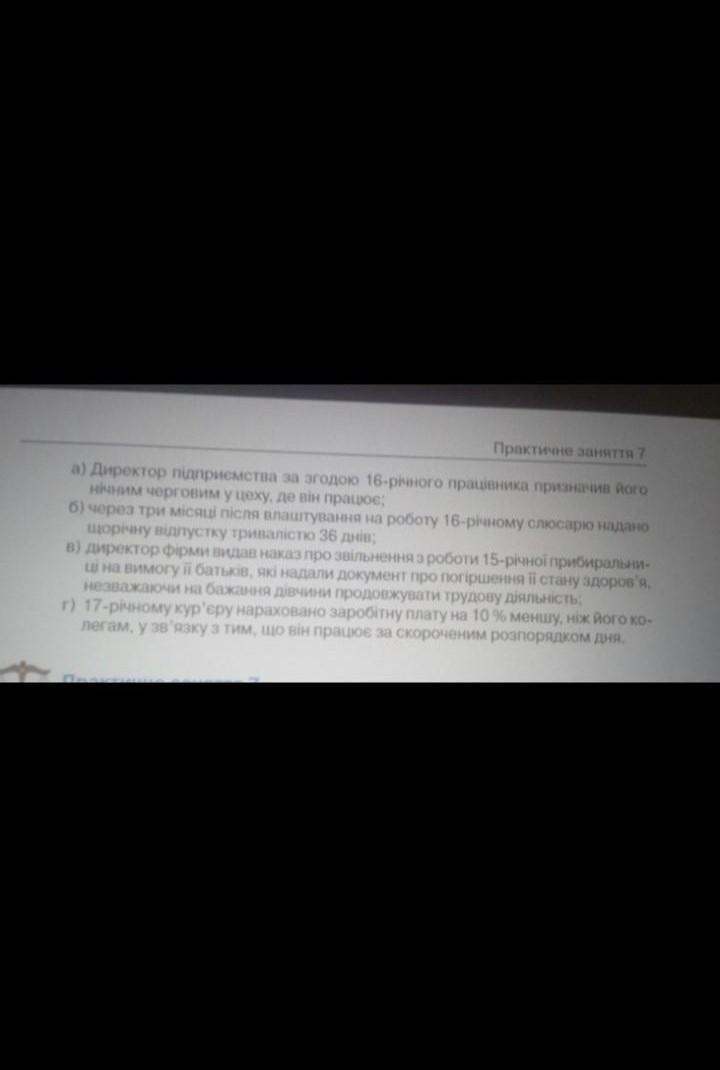 ТЕРМІНОВО визначте у якому із зазначених випадків порушено законодавство України про працю неповнолітніх осіб. І чому?