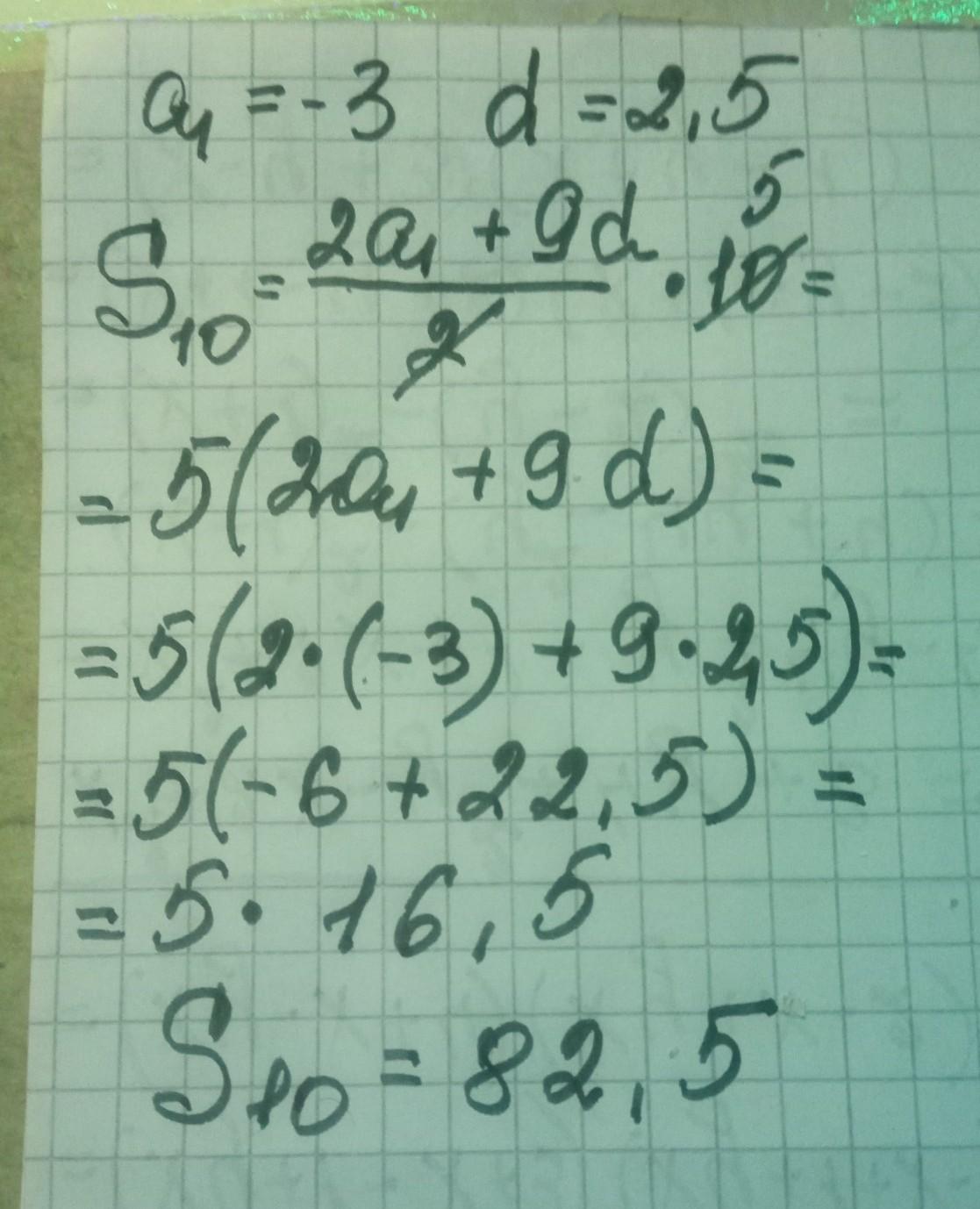 Срочно допоможіть будьласка!!!! Знайти суму десяти перших членів арифметичної прогресії (аn), якщо a1=-3; d=2,5.