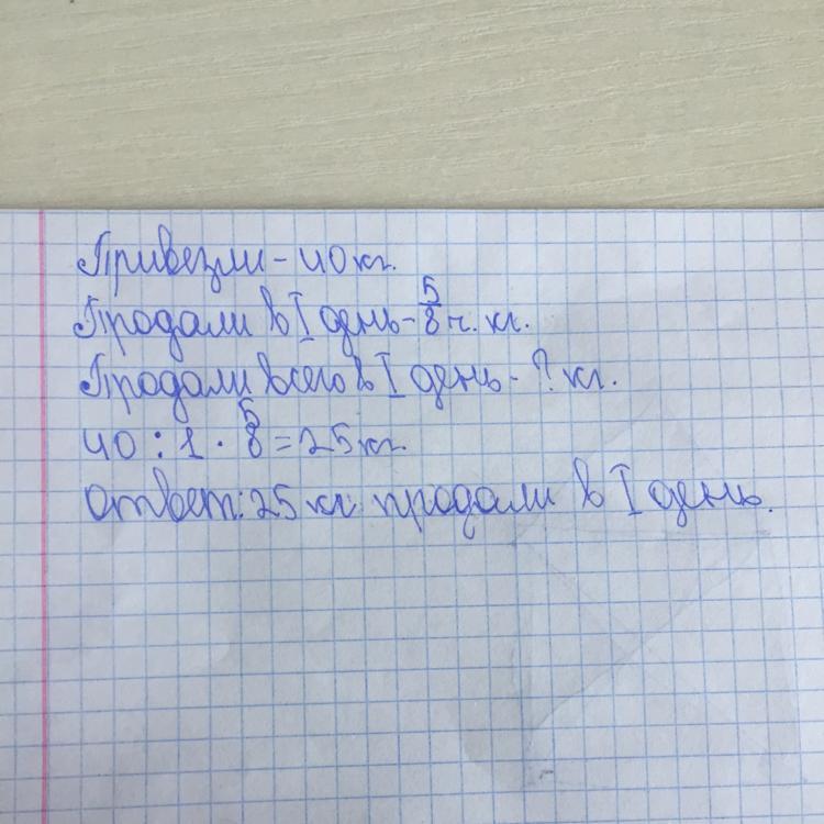 40*5/8=25 кг 5/8 это дробь