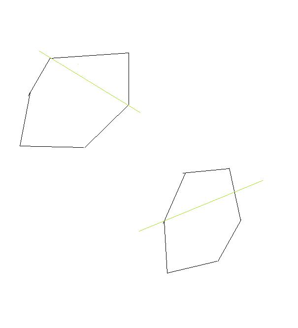 разделить шестиугольник одной прямой на треугольник и пятиугольник,на четырёхугольник и пятиугольник