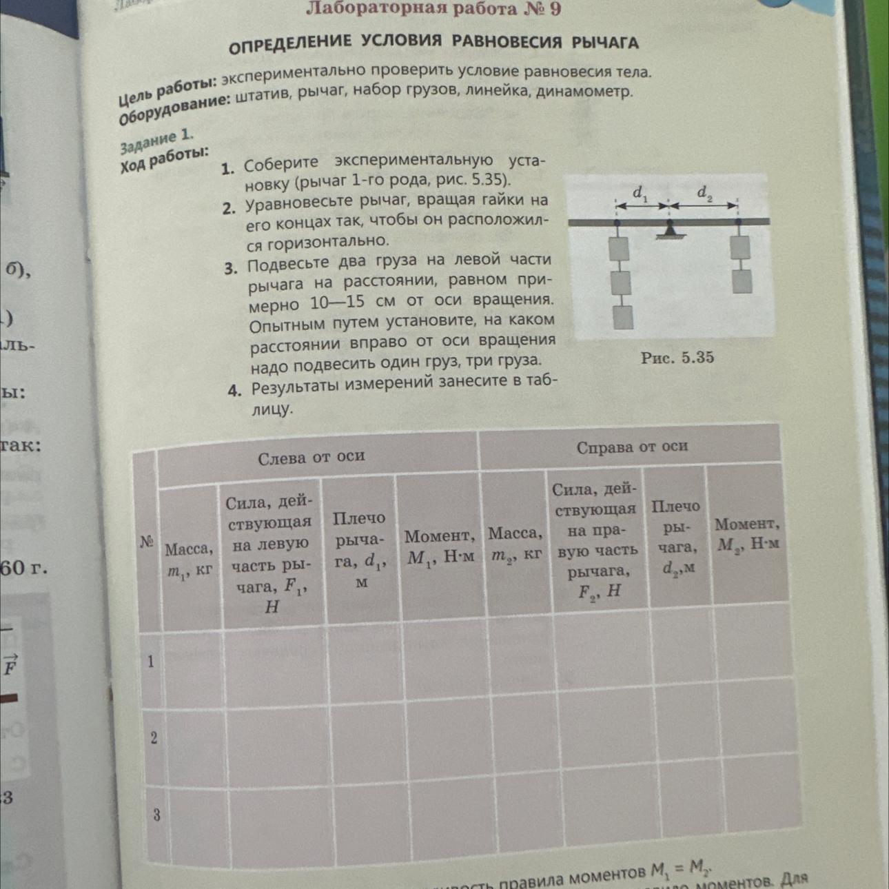 ОПРЕДЕЛЕНИЕ УСЛОВИЯ РАВНОВЕСИЯ РЫЧАГА