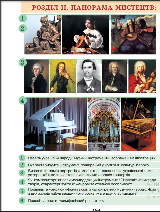 1 Назвіть українські народні музичні інструменти, зображені на ілюстраціях.