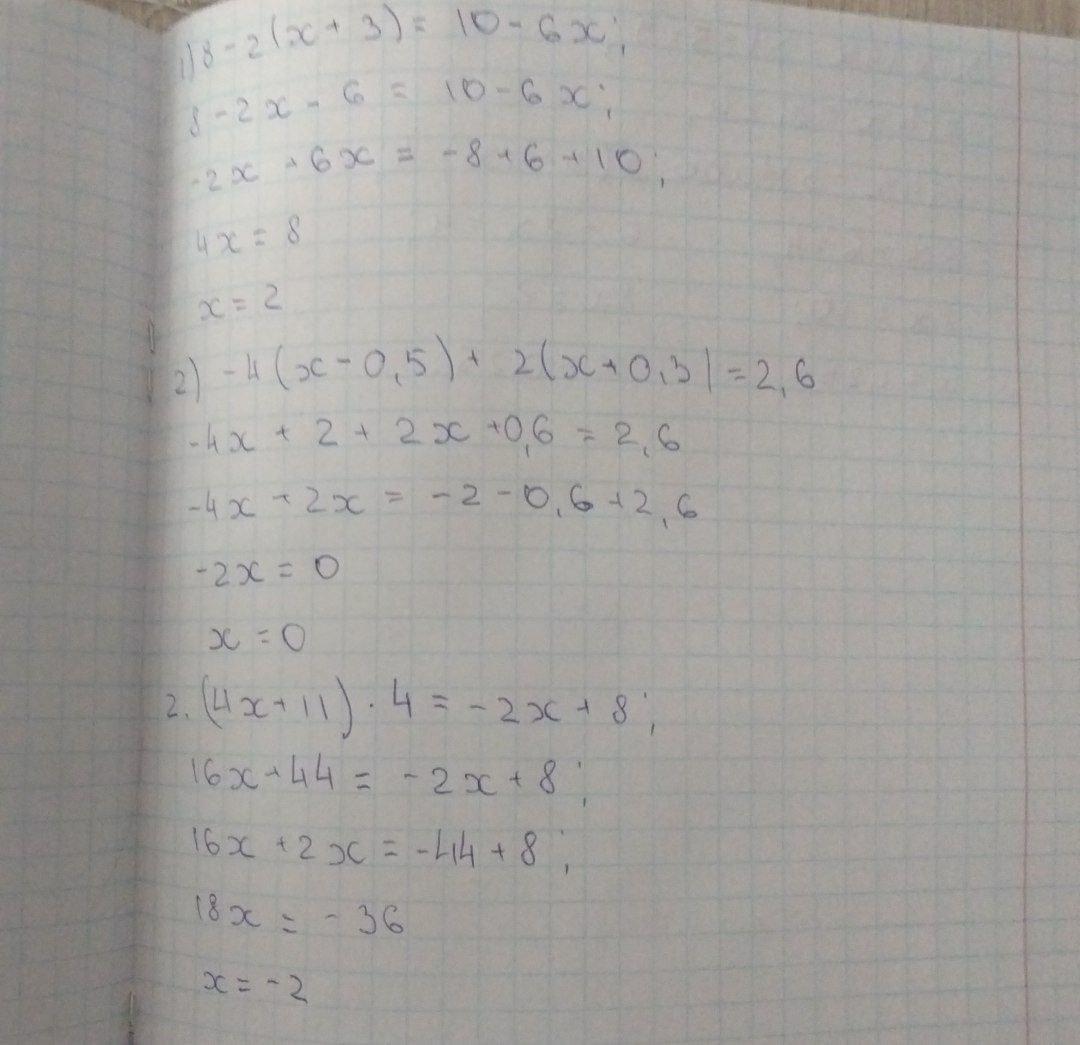 2)-4(х-0,5)+2(х+0,3)=2,6