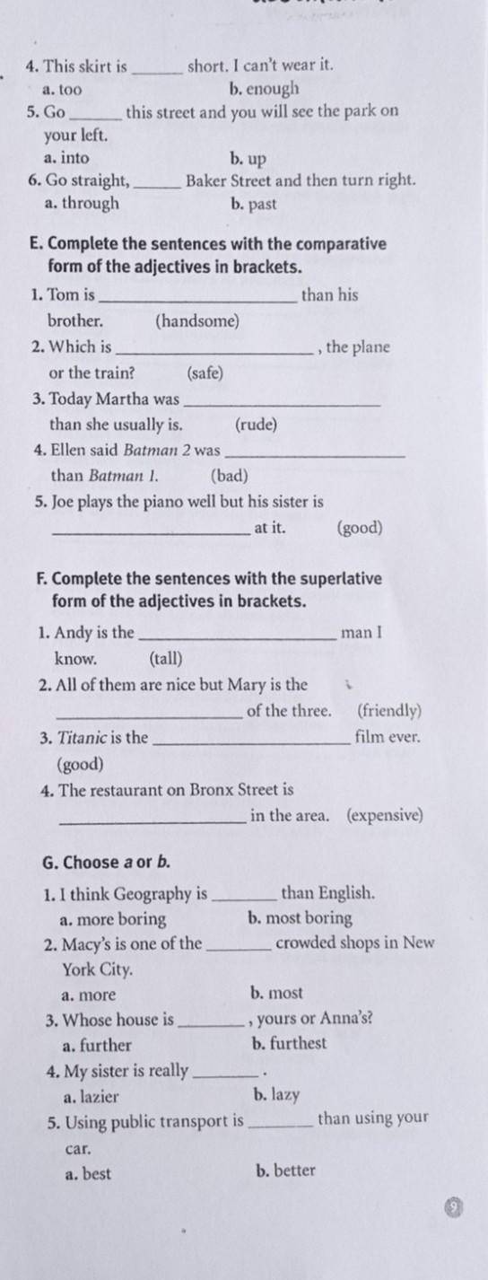 E 1 more handsome 2 safer 3 ruder 4 worse 5 better