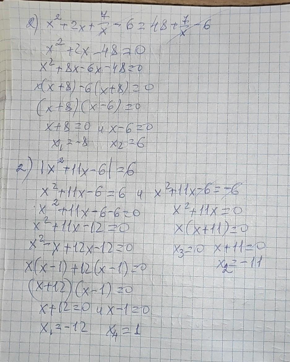 1) x²+2x+7/х-6=48+7/х-6