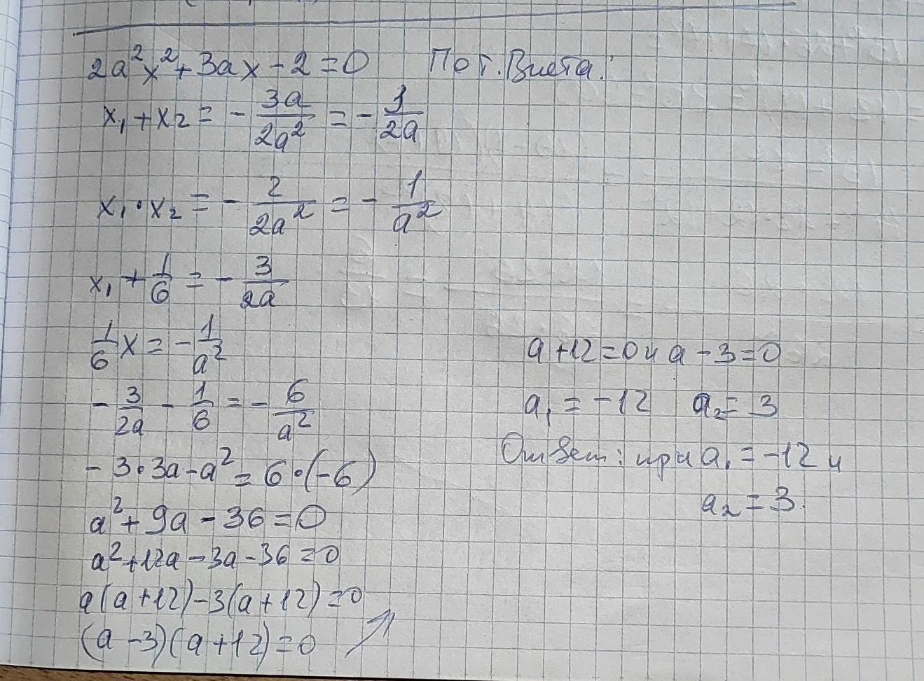 1)При яких значеннях а число 1/6 є коренем рівняння 2a²x² +3ax-2=0?