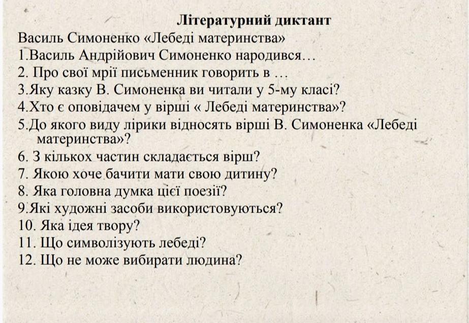 повтори: «Виростеш ти, сину» – «Виростуть з тобою приспані тривоги»; «Можна все на світі вибирати» – «Вибрати не можна тільки Батьківщину»;