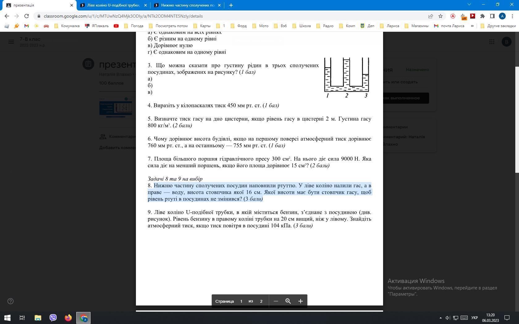 hг ? pг=pв; ρг*g*hг=ρв*g*hв; hг=ρв*hв/ρг=1*16/0,8=20 cм