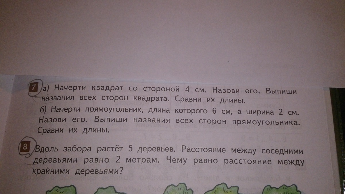 Понимаю в 8 задаче надо считать, да. И ответ к ней 8. Но! В задаче №7 Что сложного то???? Назвать квадрат?? ABCD и стороны AB BC CD AD! У квадрата стороны равны. С прямоугольником тоже самое и сравнение сторон заключается в том что 2 стороны в три раза (или на 4) больше/меньше других 2 сторон.
