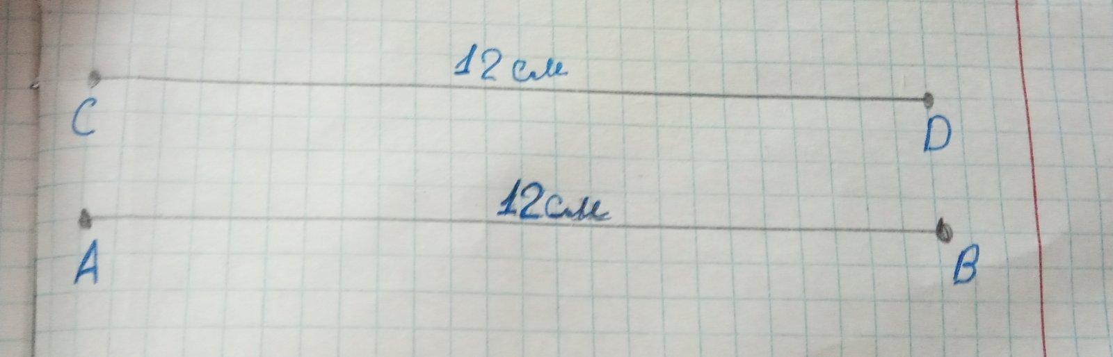 Накресли два відрізки. Відрізок АВ довжиною 12 см, а довжина відрізка CD становить довжини відрізка АВ.