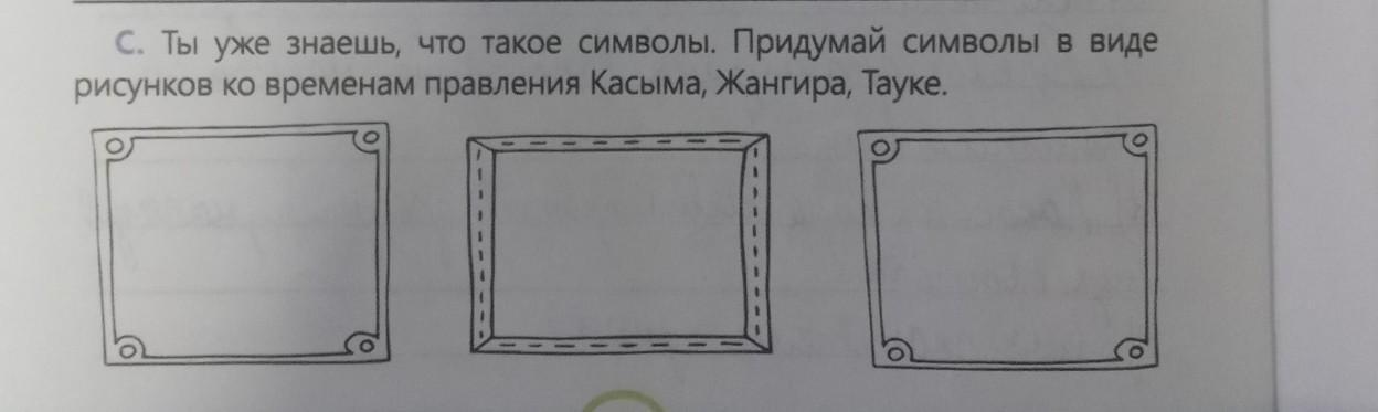 С. Ты уже знаешь, что такое символы. Придумай символы в виде рисунков ко временам правления Касыма, Жангира, Тауке.