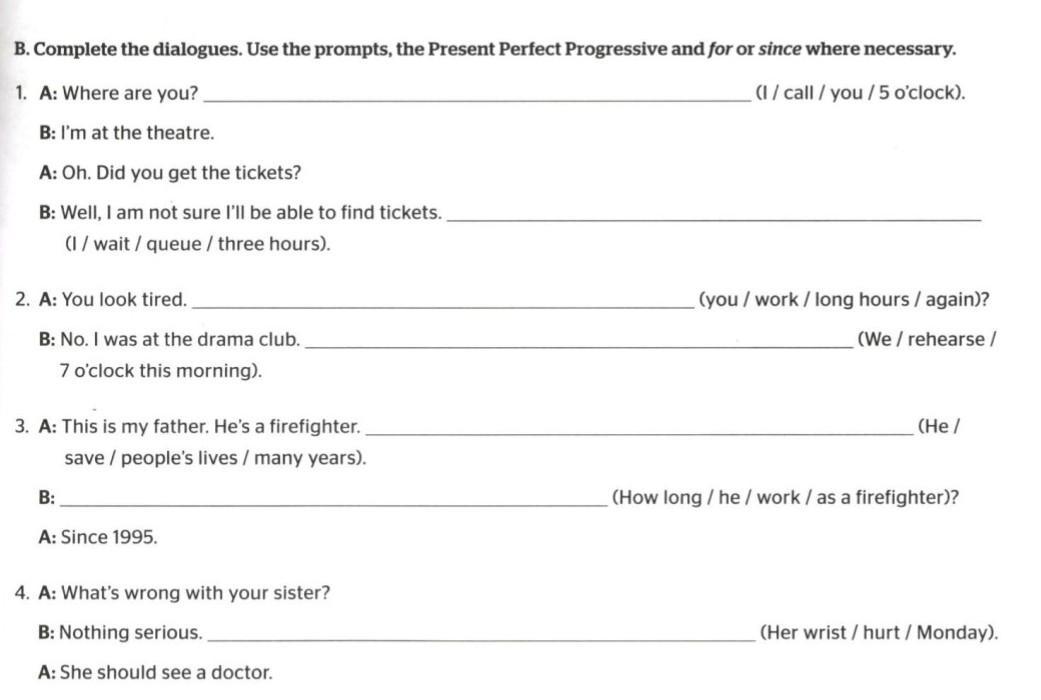 B: No. I was at the drama club. We have been rehearsing since 7 o’clock this morning.