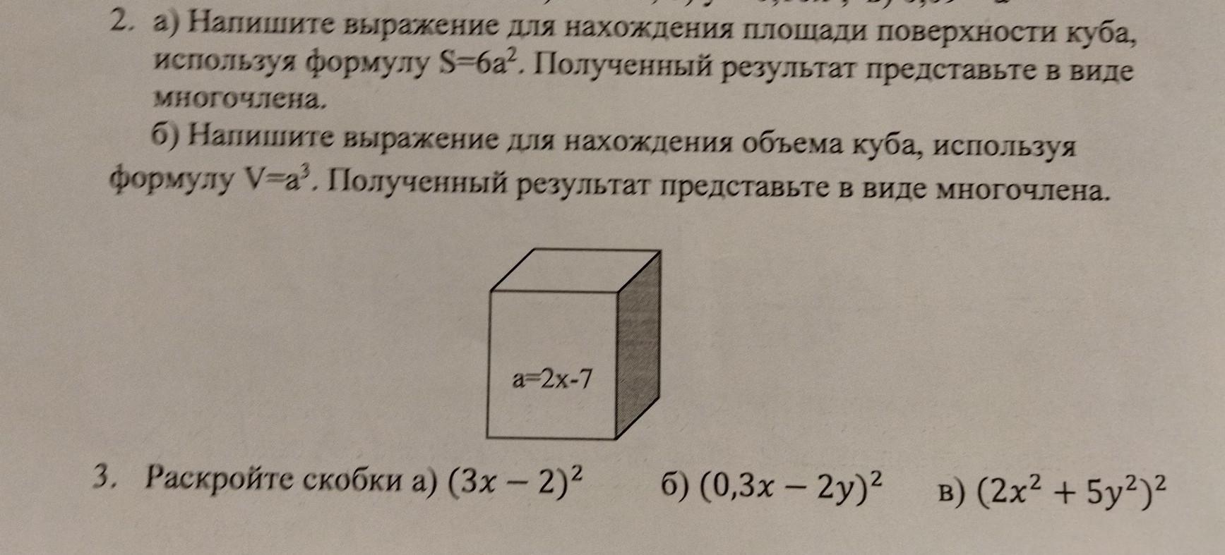 формулу V=a³. Полученный результат представьте в виде многочлена.