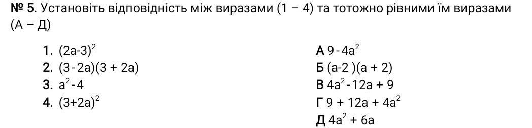 1)В 2)А 3)Б 4)Г. За формулами скорочуваного множення