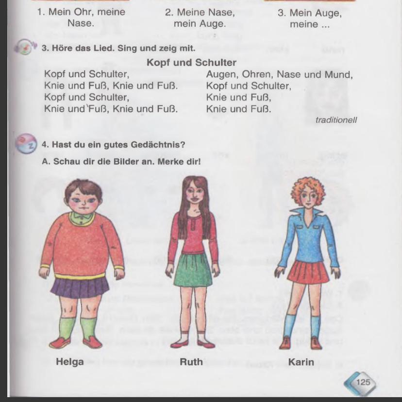 Ich zwinge mich, dass Helga überhaupt Mädchen ist, denn sie hat kurze Haare und ihr Gesicht sieht ganz männlich aus. Außerdem sie ziemlich dick ist. Trotzdem sie den kurzen Rock mit roten Pullover und die rosa Schuhe mit grünen Socks.