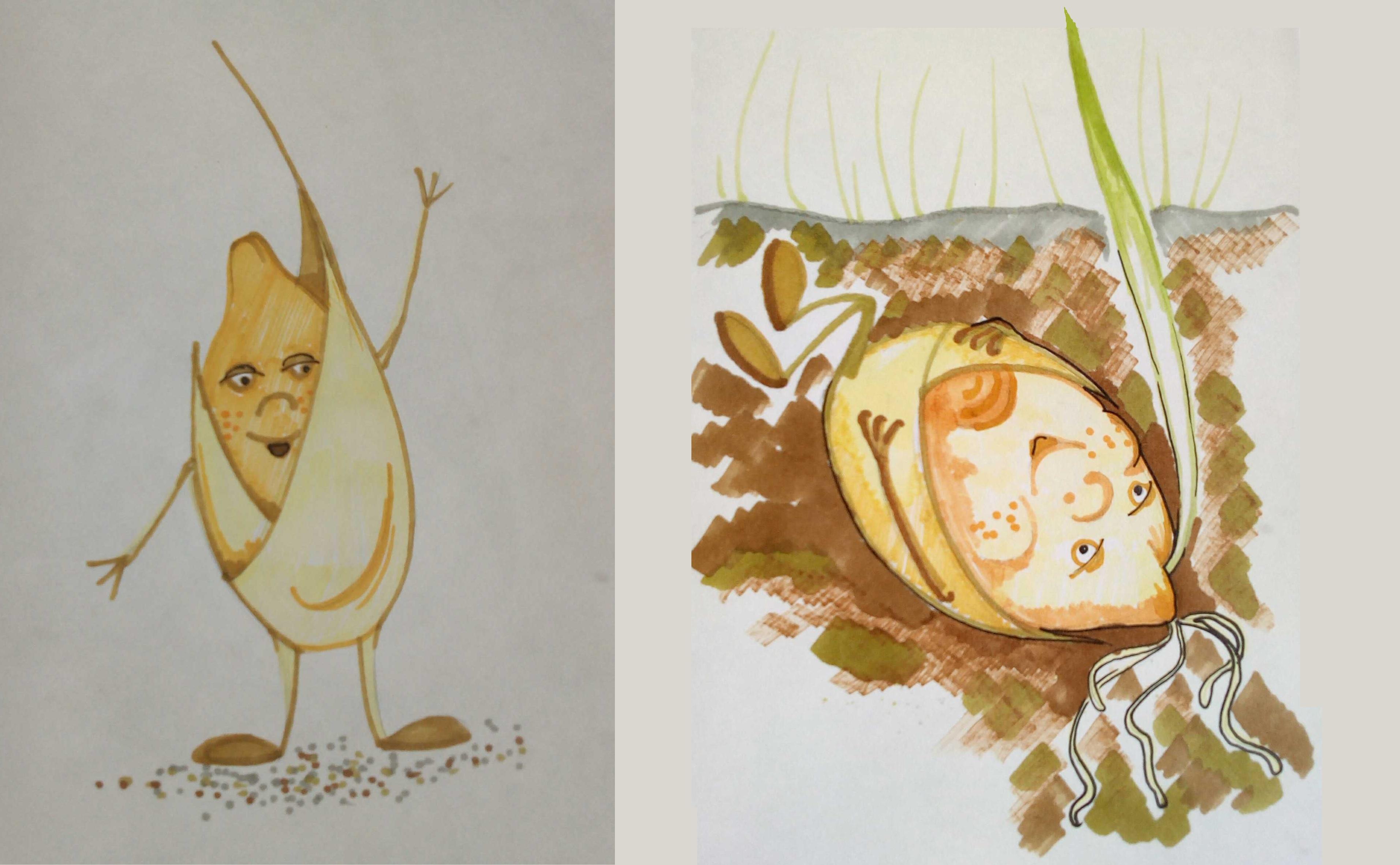 Представь себя художником-мультипликатором. Тебе поручили придумать мультяшного героя к «Сказке об одном зернышке», и герой этот - не человек, а зернышко. Нарисуй придуманного героя в разных позах, как бы поместив на кинопленку.