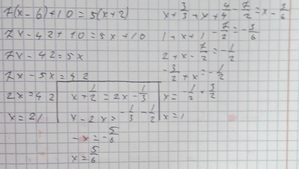 найдите корень уравнения 7(x-6)+10=5(x+2)