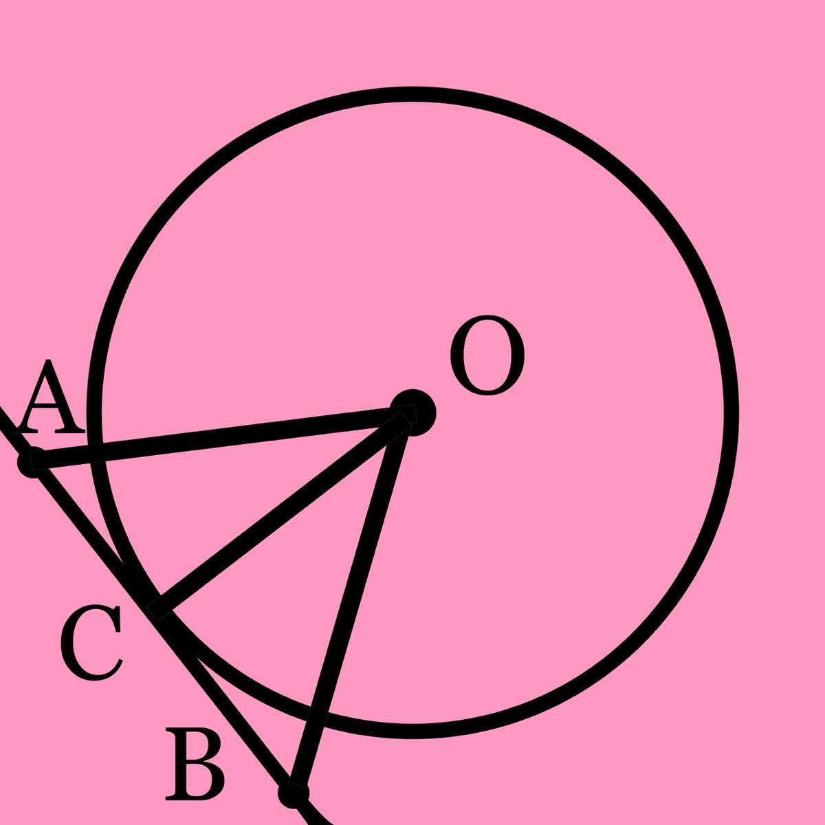 Для розв'язання цієї задачі ми можемо скористатися властивістю, що кут між дотичною до кола і відрізком, що його кінець лежить на колі, є прямим кутом. Оскільки точки А і В знаходяться на дотичній, то СА і СВ є дотичними до кола, а кути ОСА і ОВС є прямими кутами.
