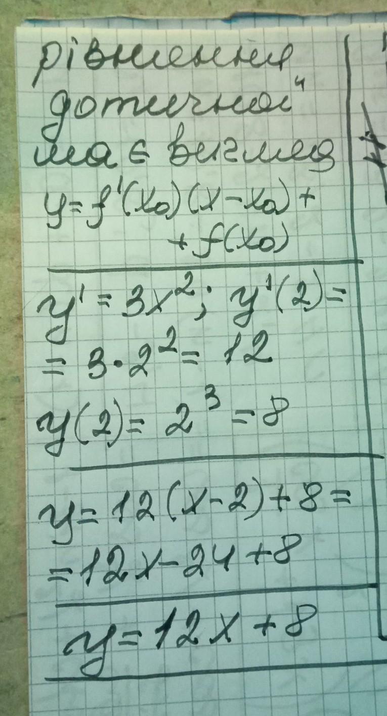 Складіть рівняння дотичної до графіка функції у=х³ у точці А(2;8)​