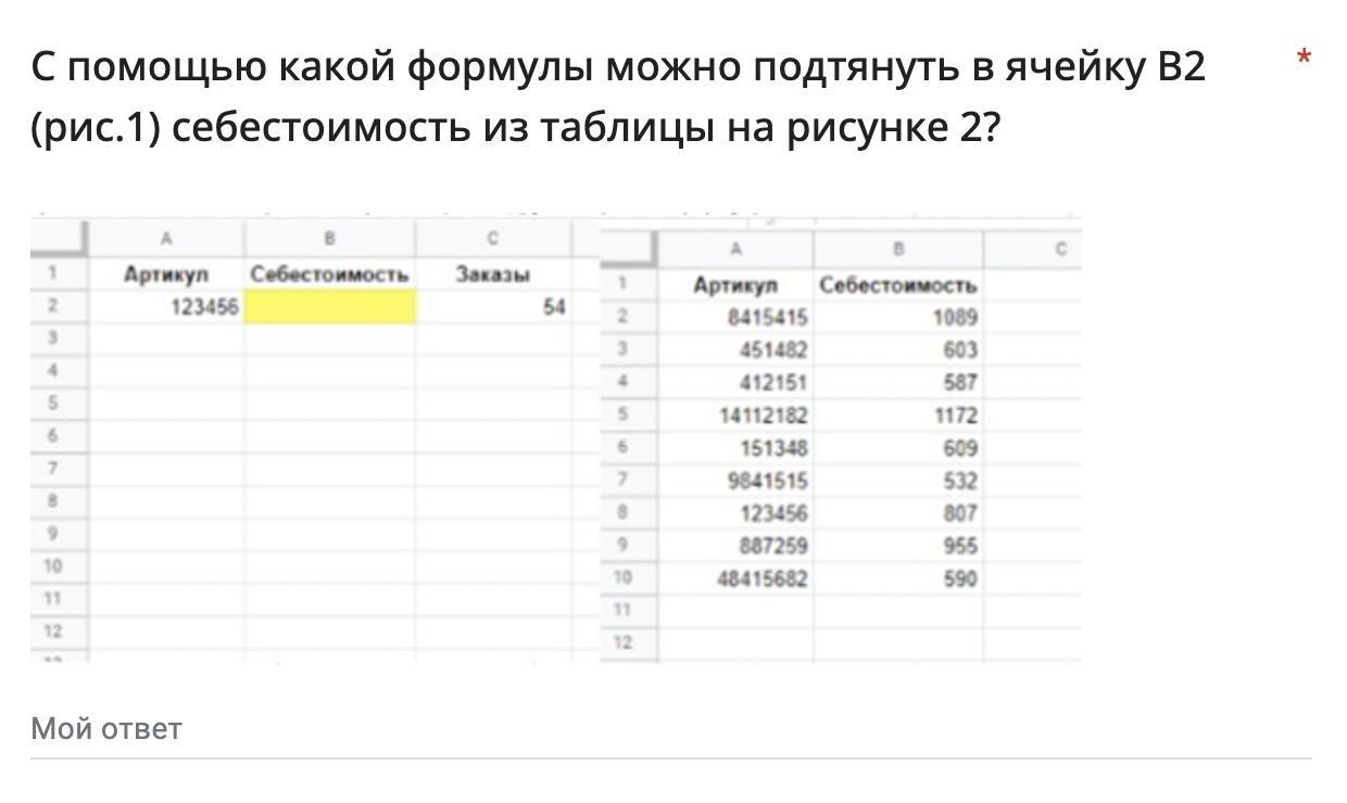 С помощью какой формулы можно подтянуть в ячейку В2 (рис.1) себестоимость из таблицы на рисунке 2?