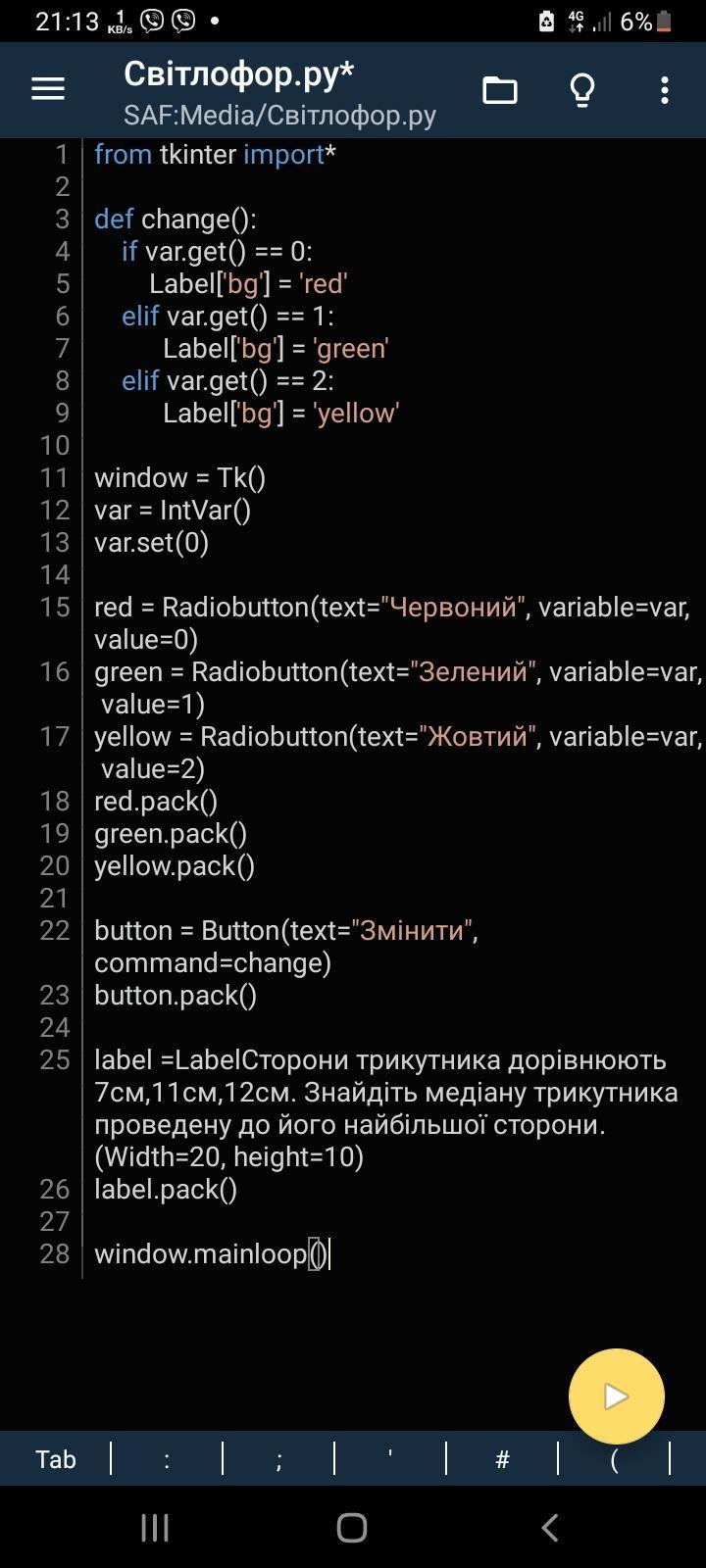 label = Label(text="Сторони трикутника дорівнюють 7CM, 11см, 12см. Знайдіть медіану трикутника проведену до його найбільшої сторони.", width=20, height=10)