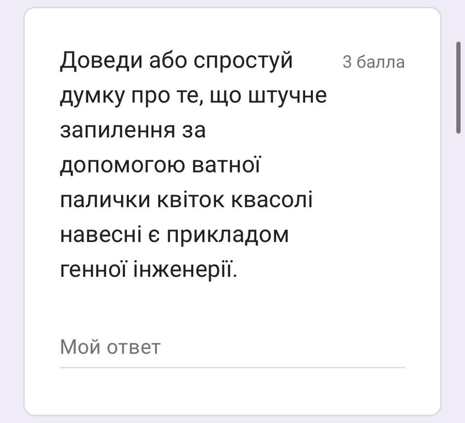 Ні, штучне запилення квіток квасолі за допомогою ватної палички не є прикладом генної інженерії , оскільки це не змінює генетичну структуру рослини.