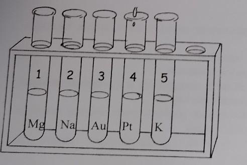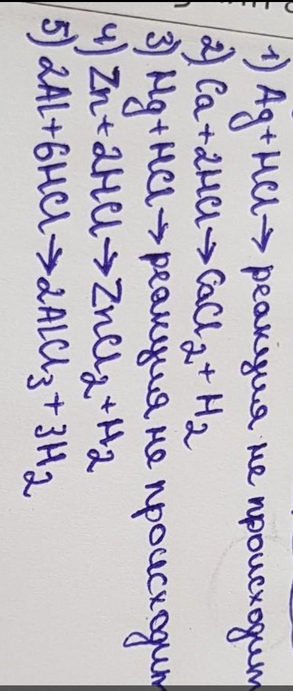 4. Посмотрите на рисунок. Во все пробирки налит раствор соляной кислоты НСІ. В них металлы. В пробирках под какими номерами будет происходить химическая реакция? реакции словесно 990 Н 1 Mg 2 3 0 Nal Au 4 5 Pt K