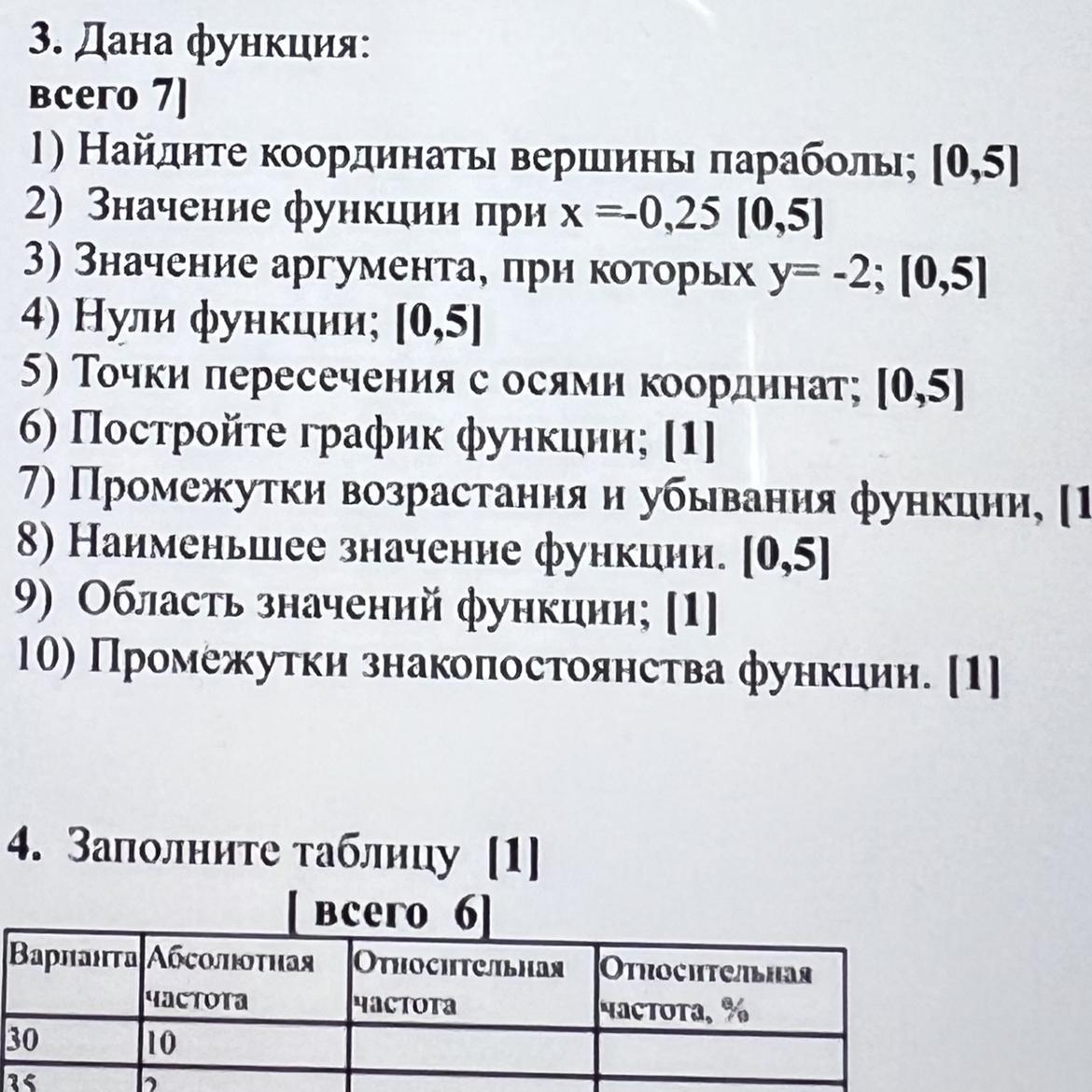 1) Найдите координаты вершины параболы;