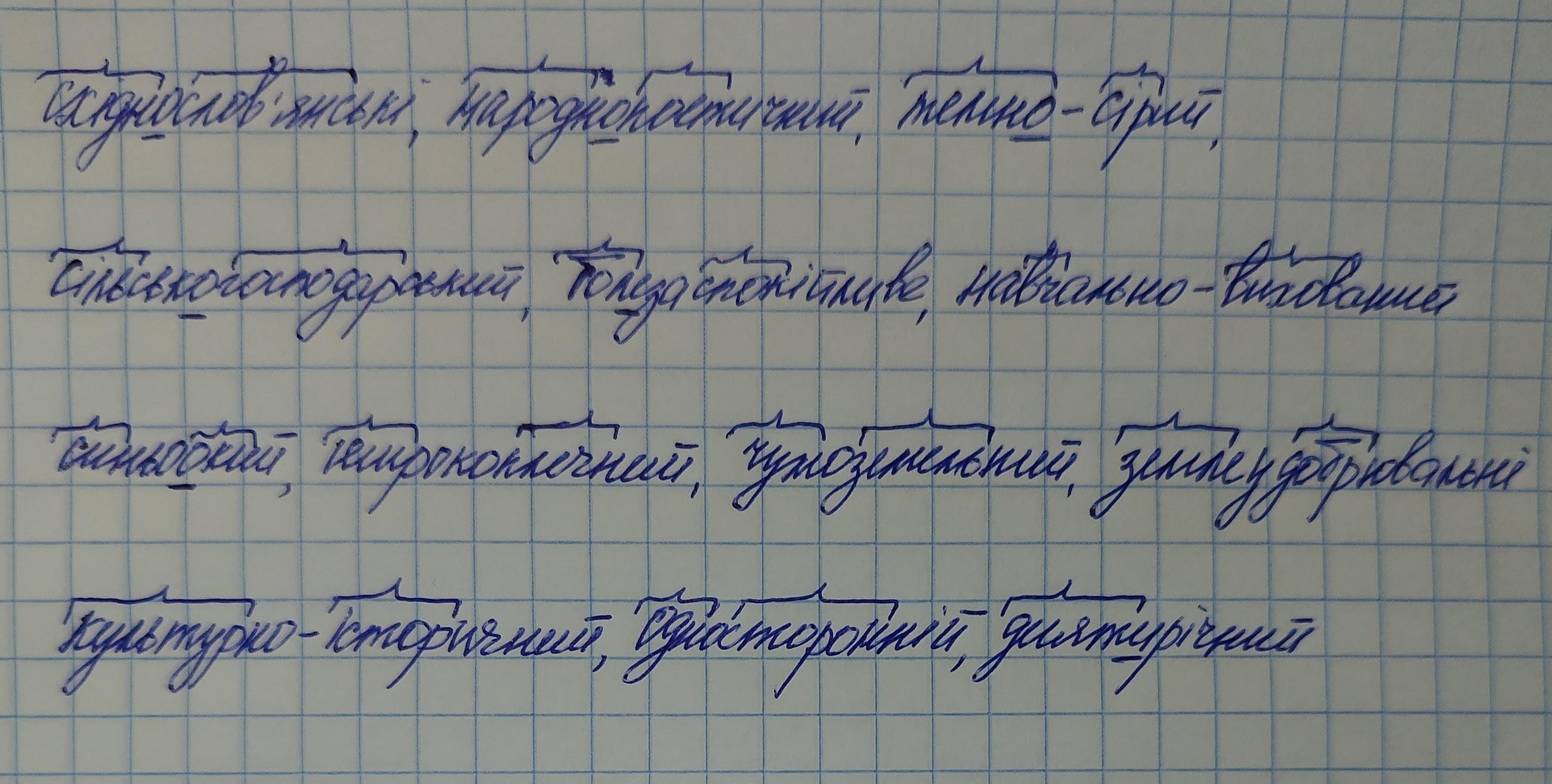 2. Утворіть від поданих сполучень складні прикметники й запишіть. Виділіть корені та сполучні голосні.