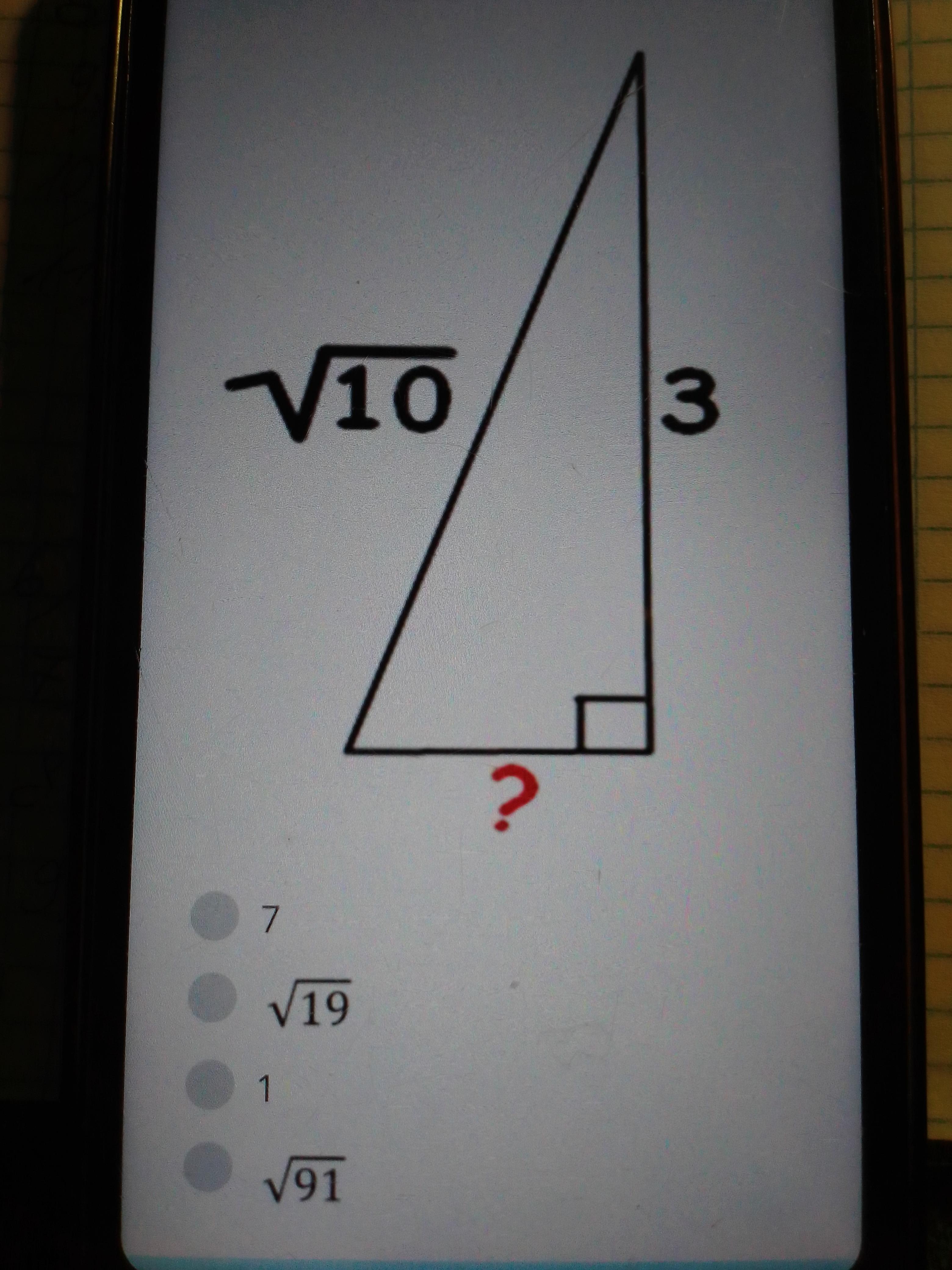 теорема пфагора, сума квпдратів катетів дорівнює квадрату гіпотенузи 10=9+1