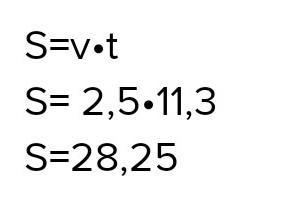 S=v*t=11.3*2.5=11.3*10/4=113/4=28.25км=28км 250м