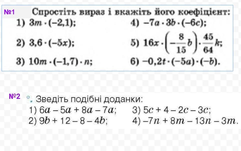 6) -0,2t×(-5a)×(-b)= -tba k=-1