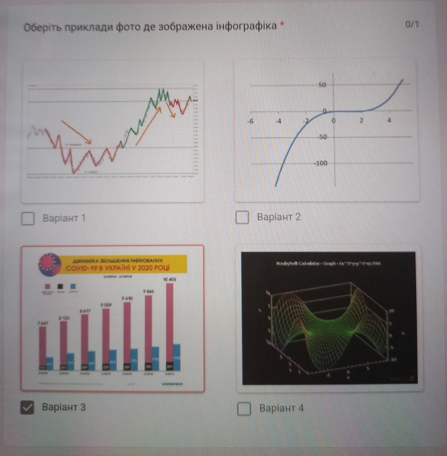 Оберіть приклади фото де зображена iнфографiка * Варіант 1 7647 жизни ДИНАМКА ЗБІЛЬШЕННО КОВАНИХ COVID-19 В УКРАЇНІ У 2020 РОЦІ 10 406 8617 Варiант 3 9.009 9410 9866 VA Варiант 2 HolySoft Calculato Варiант 4 50 -50 -100 О 2 730/390 4 -10 0/1. на фотке понятно, оч нужно даю 15 балов