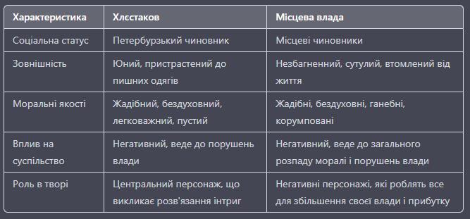 Комедія "Ревізор" Н.В. Гоголя - це відомий твір, де автор розкриває соціально-психологічні особливості російського суспільства. У творі зустрічаємо багато персонажів, але найбільш визначними є Хлєстаков та місцева влада. Давайте порівняємо ці персонажі: