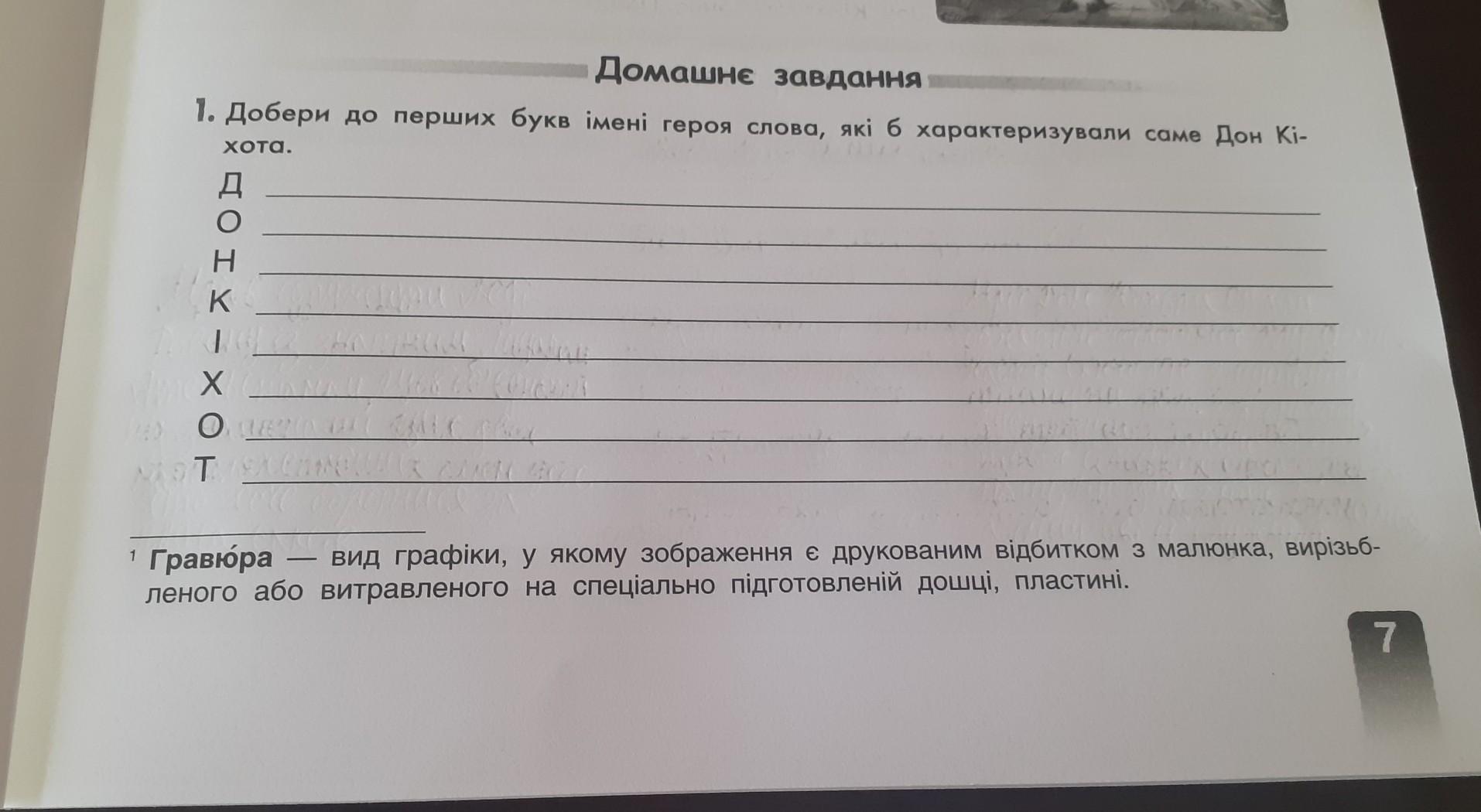 1. Добери до перших букв імені героя слова, які б характеризували саме Дон Кі- хота.