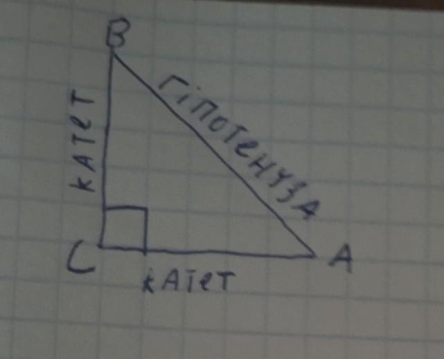 Побудуйте прямокутний трикутник АВС прямим кутом С. Опишіть його елементи.