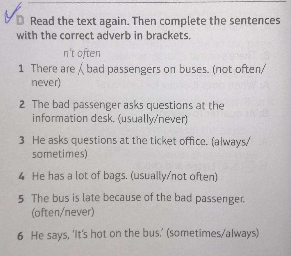 3 The bus leaves at ten. The bad passenger gets to the bus at