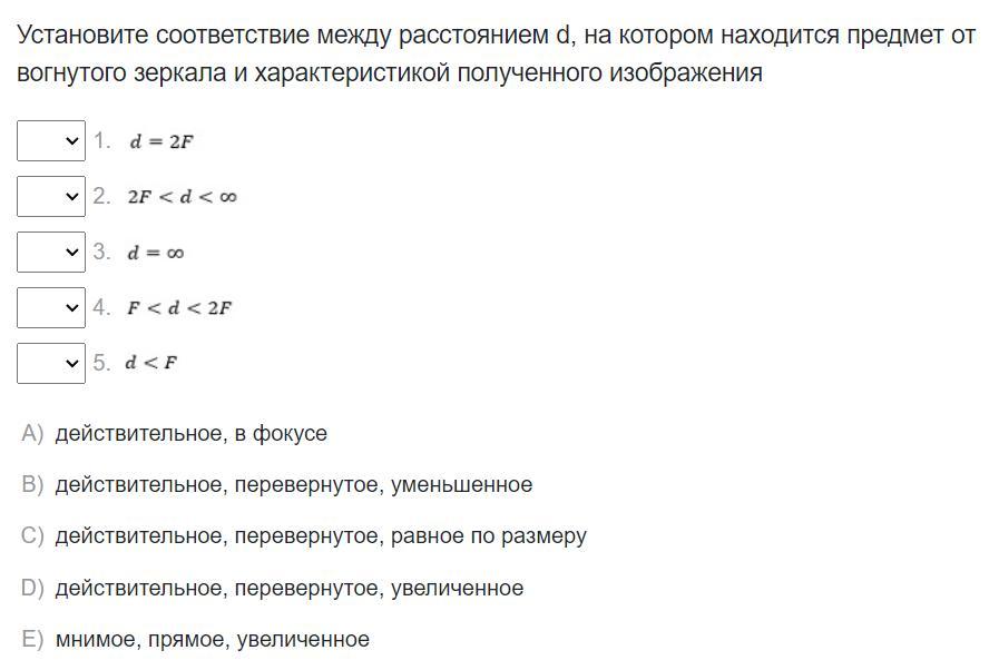 d = 2F - действительное, перевернутое, равное по размеру изображение находится в фокусе зеркала