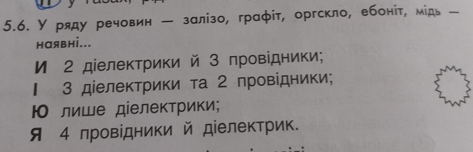 5.6. У ряду речовин - залізо, графіт, оргскло, ебоніт, мідь - наявні... ДАЮ 20 БАЛІВ!!!