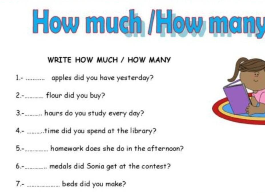 1. How many 2. How much 3. how many 4. how much 5. how much 6. how much 7. how much