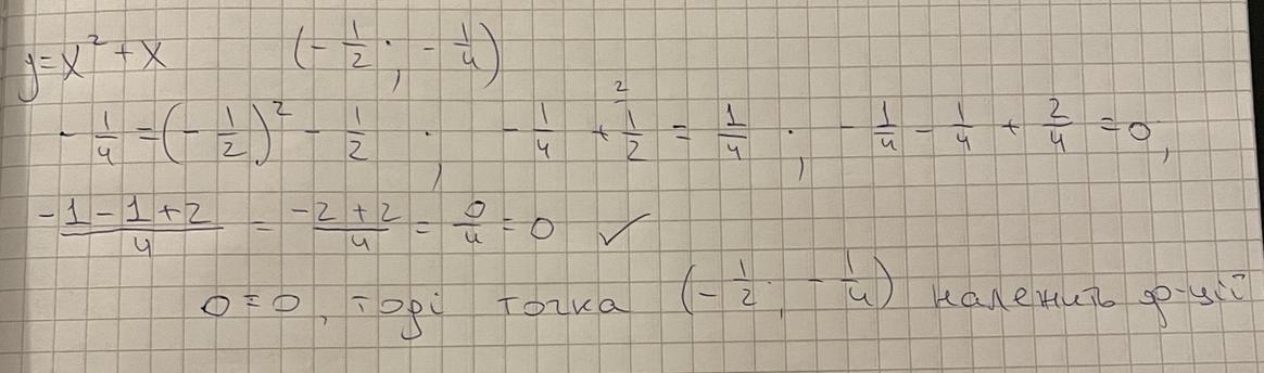 Якщо ми підставимо данні числа в рівняння і отримаємо правильну тотожність (тобто при спрощеннях отримаємо 0=0), то ця точка належить графіку функції
