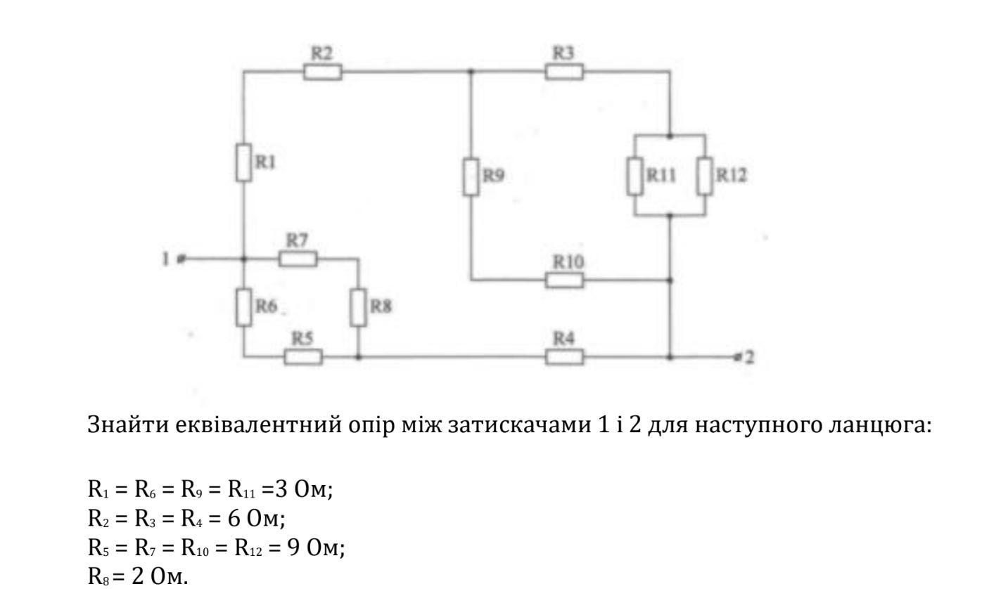 Rэкв1,2,3,9,10,11,12=R1+R2+(R3+Rэкв11,12)*(R9+R10)/(R3+Rэкв11,12+R9+R10)=3+6+(6+2,25)*(3+9)/(6+2,25+3+9)=13,9 Ом