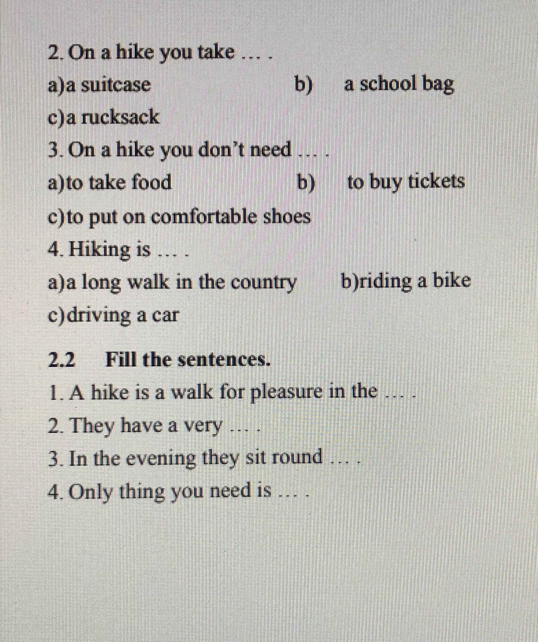 4)a rucksack with all the things you will use on a hike and a group of your best friends or classmates