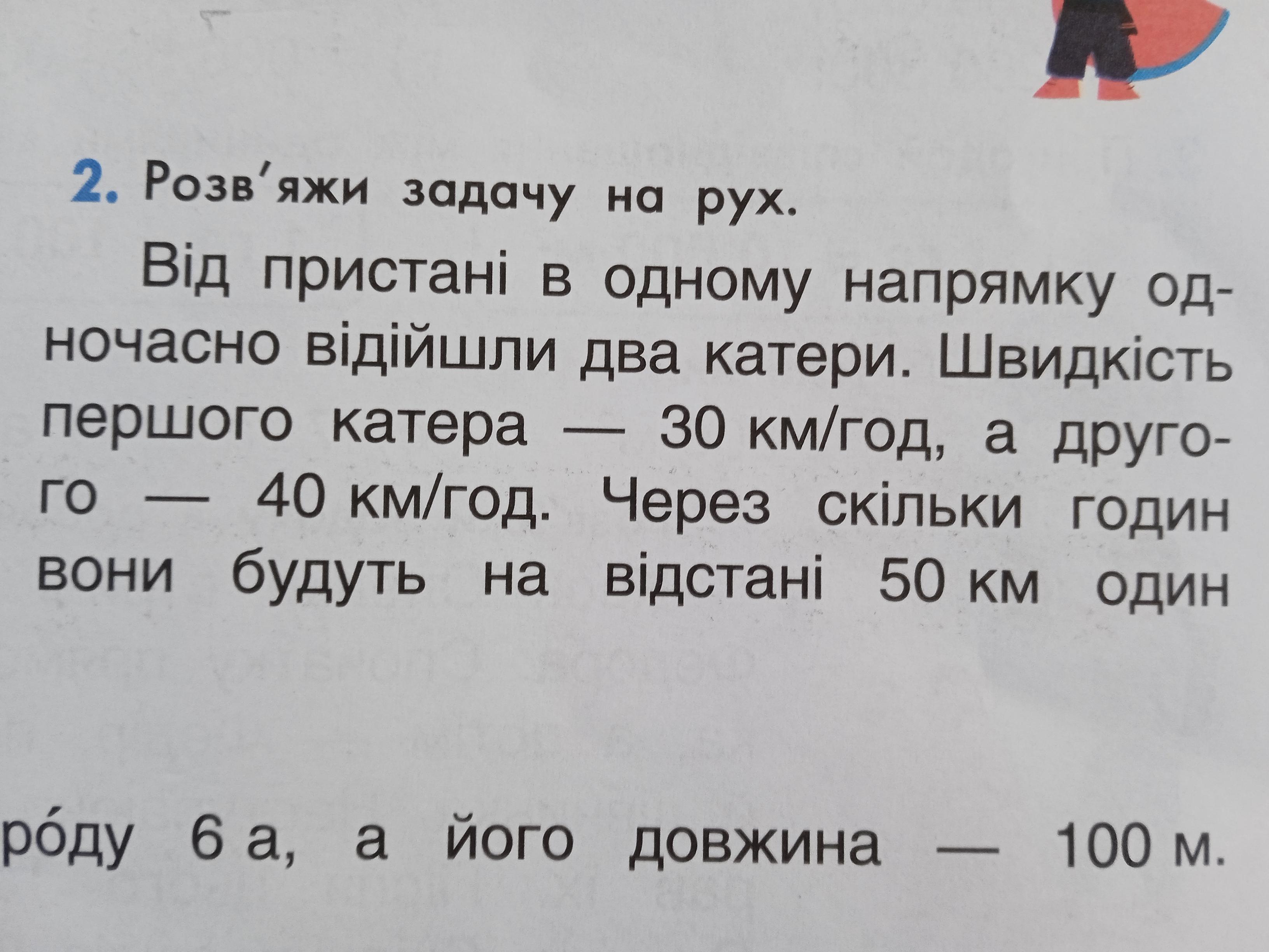 Пошаговое объяснение:різниця между скоростю першого і другого катера 10 Км/год значить на відстані 50 Км друг от друга вони будуть через