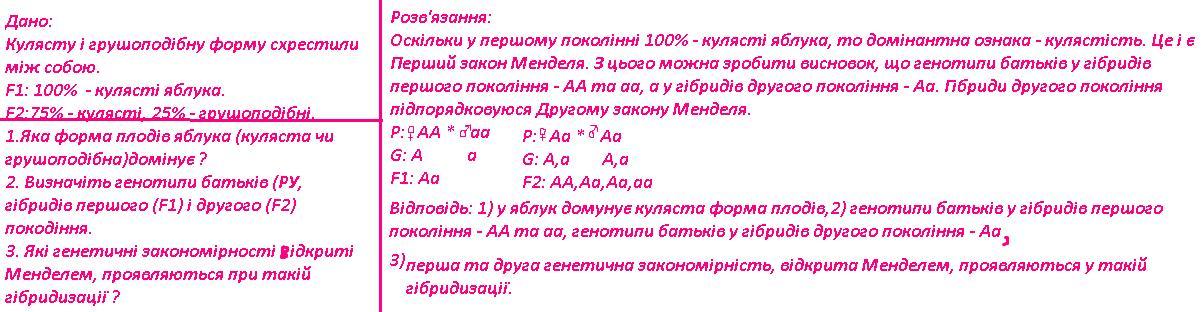 2. Визначіть генотипи батьків (РУ, гібридів першого (F1) і другого (F2) покодіння.