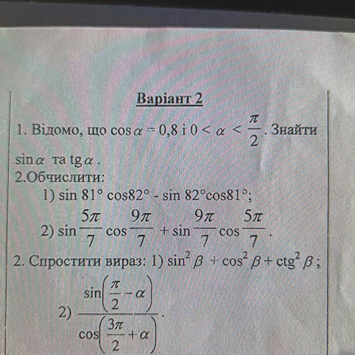 sin a = ±0.6 (беремо додатнє значення, оскільки a належить 1-й чверті