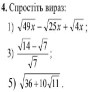 Відповідь:1) √49x-√25x+√4x= 7√x -5√x -2=2√x -2