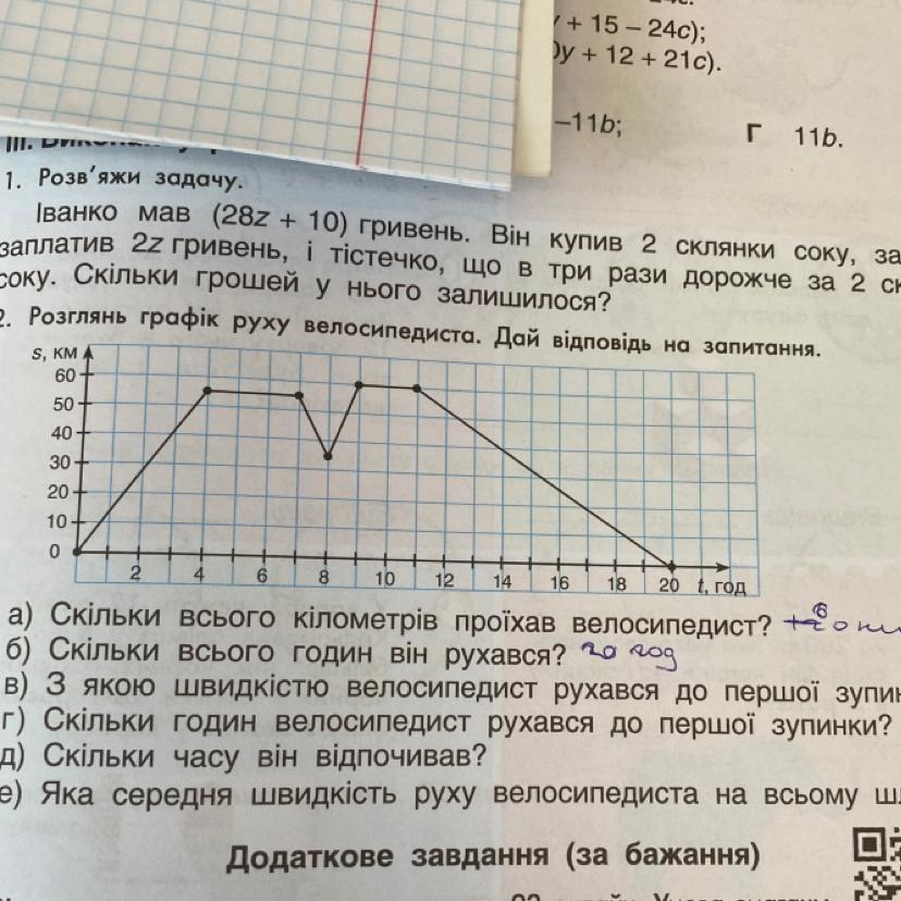 б) 4ч + 1ч + 1ч + 9ч = 15 часов — всего велосипедист был в движении