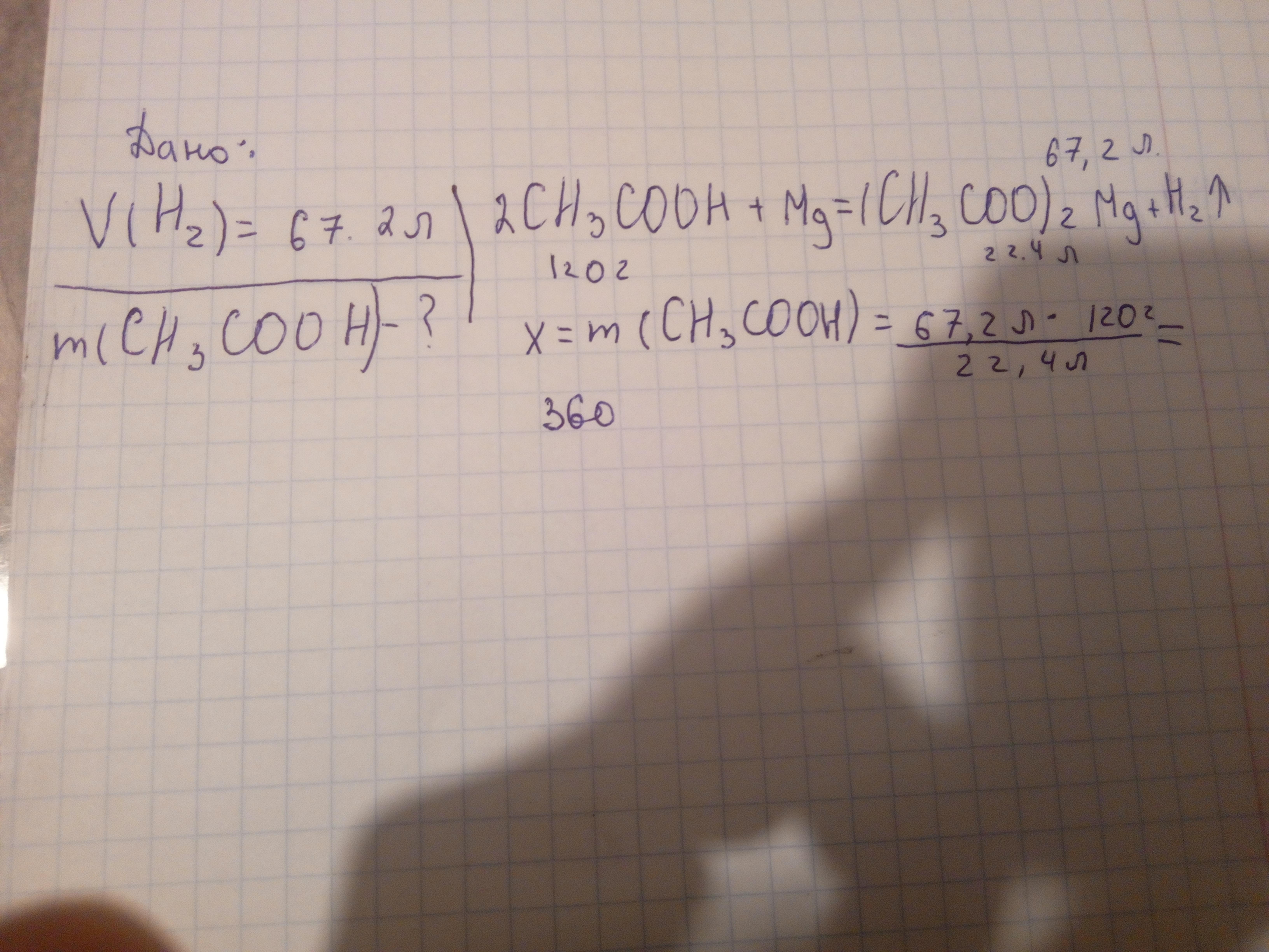Обчисліть масу етанової кислоти, що прореагувала з магнієм, якщо виділився водень об'ємом 67,2 л (н. у.).